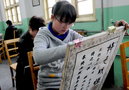 参加考试的艺术类考生仔细答题
