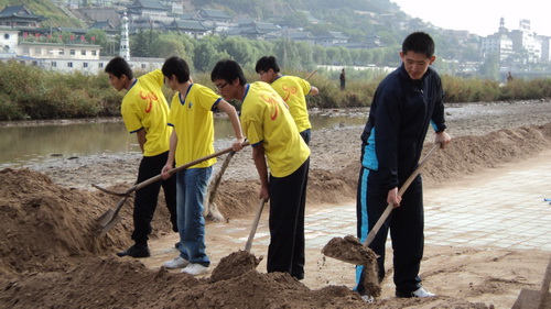 同学们清理黄河泥沙